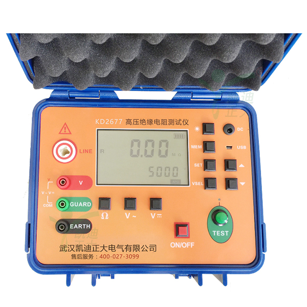 KD2677高壓絕緣兆歐表又名高壓絕緣電阻表,用于絕緣電阻的測試。本儀表具有大屏幕LCD灰白背光顯示、數(shù)據(jù)存儲、數(shù)據(jù)查閱、報警、自動放電、充電、自動關(guān)機等功能。同時還具備測量直流電壓交流電壓吸收比和極化指數(shù)功能。整機美觀高檔,量程寬廣,分辨率高,操作便捷,攜帶方便,準(zhǔn)確、可靠、性能穩(wěn)定,輸出功率大,抗干擾能力強。