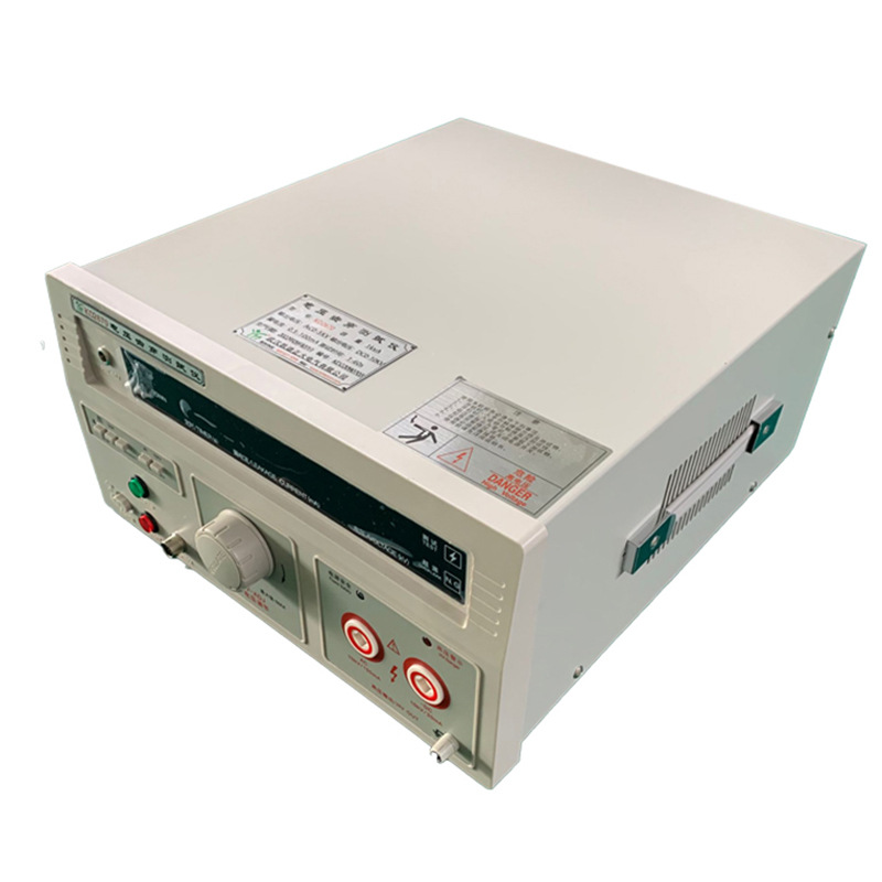 其工作原理是:把一個高于正常工作的電壓加在被測設備的絕緣體上,持續一段規定的時間,加在上面的電壓就只會產生很小的漏電流,則絕緣性較好。程控電源模塊、信號采集調理模塊和計算機控制系統三個模塊組成測試系統。選擇耐壓儀的2個指標:最大輸出電壓值及最大報警電流值的數值。