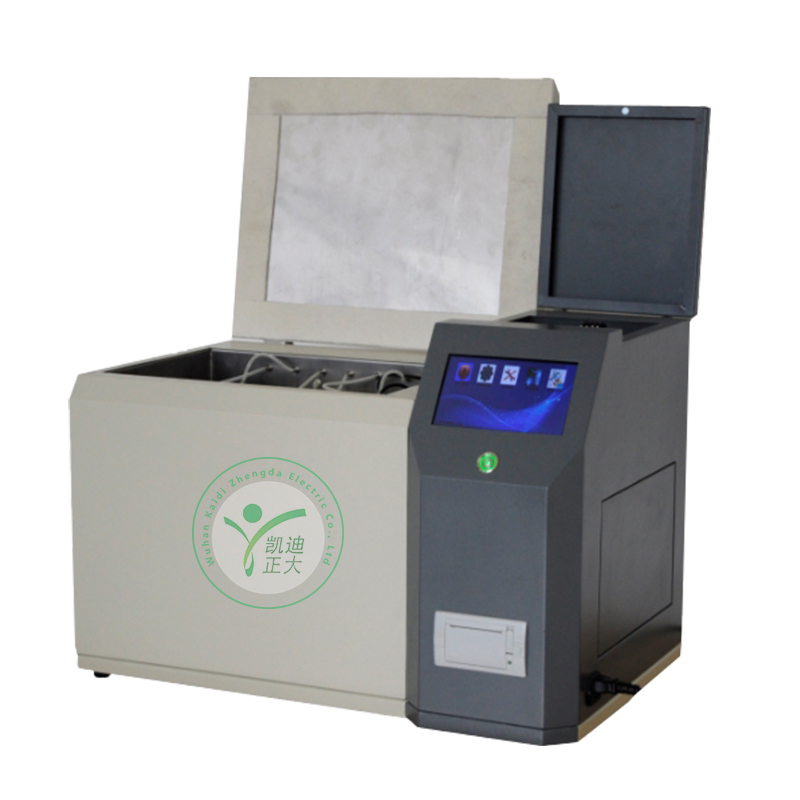 KDSR-303D全自動水溶性酸測試儀(比色法)是根據(jù)中華人民共和國國家標(biāo)準(zhǔn)GB/T7598-2008運(yùn)行中變壓器油水溶性酸測試法及相關(guān)標(biāo)準(zhǔn)設(shè)計(jì)制造。采用大屏幕液晶顯示,利用微處理器控制,可以根據(jù)用戶的設(shè)定條件自動完成加熱、恒溫、振蕩、取樣、測試、清洗、打印等功能,可以一次性測量1-6個樣品,縮短了用戶的測試時間。