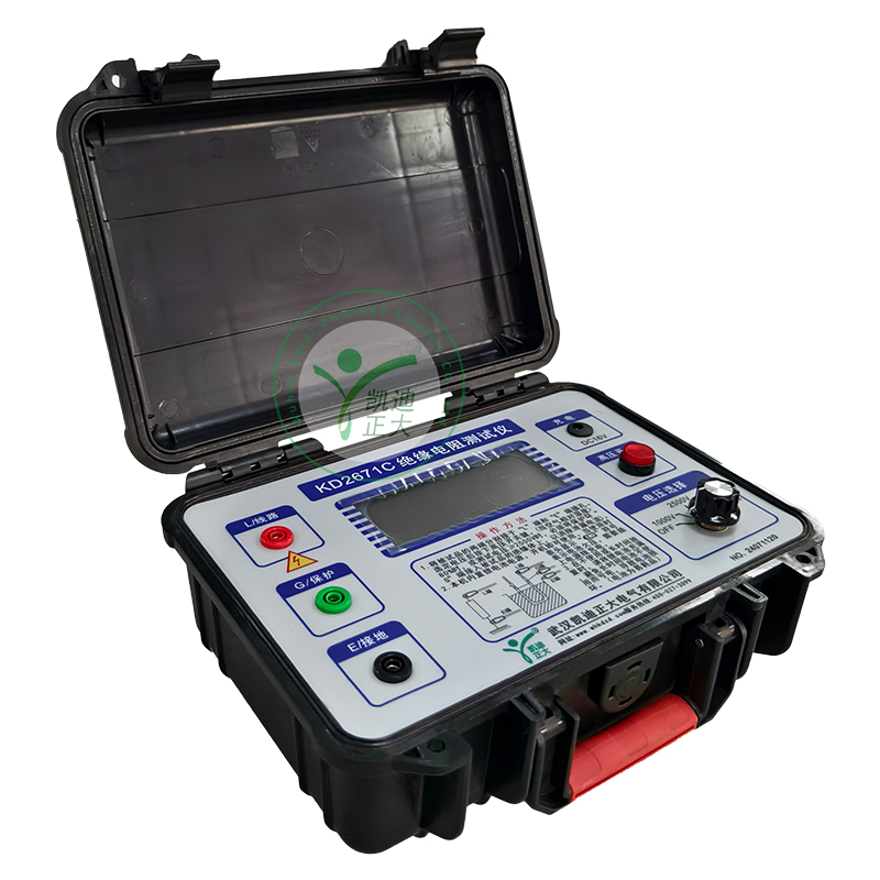 KD2671C絕緣電阻測試儀由中大規模集成電路組成。本表輸出功率大,短路電流值高,輸出電壓等級多(有四個電壓等級)。工作原理為由機內電池作為電源經DC/DC變換產生的直流高壓由E極出經被測試品到達L極,從而產生一個從E到L極的電流,經過I/V變換經除法器完成運算直接將被測的絕緣電阻值由LCD顯示出來。