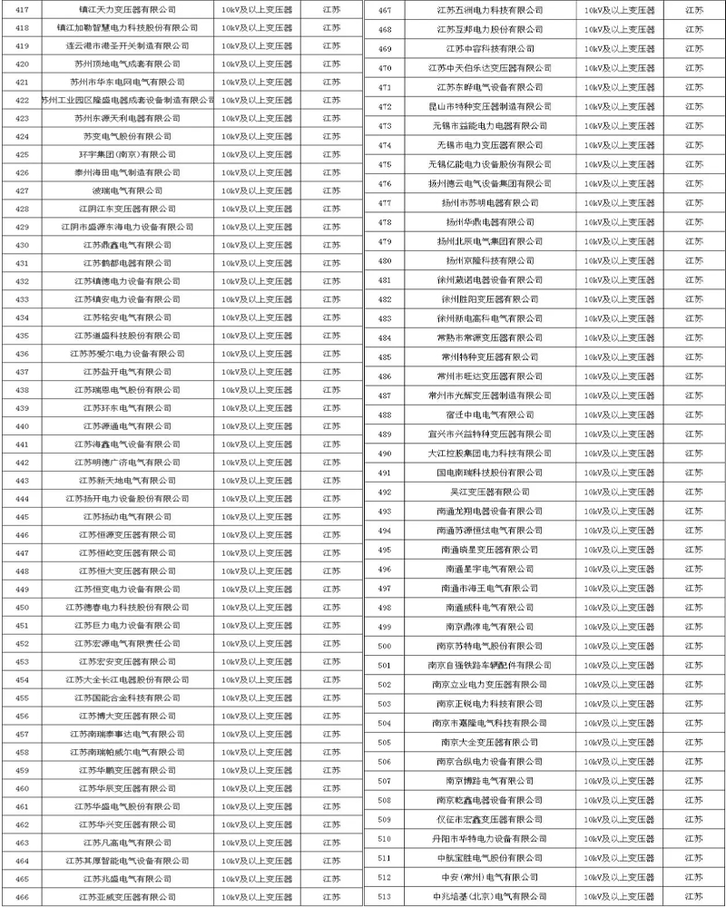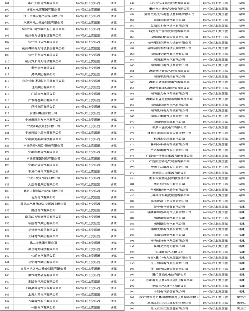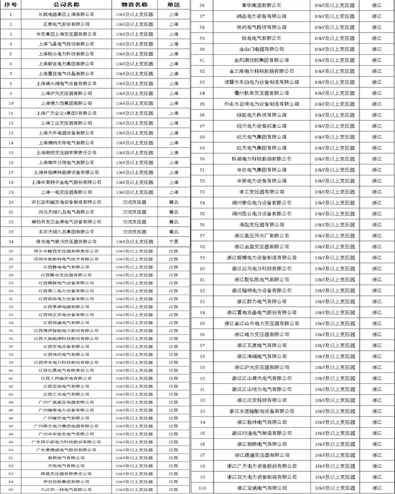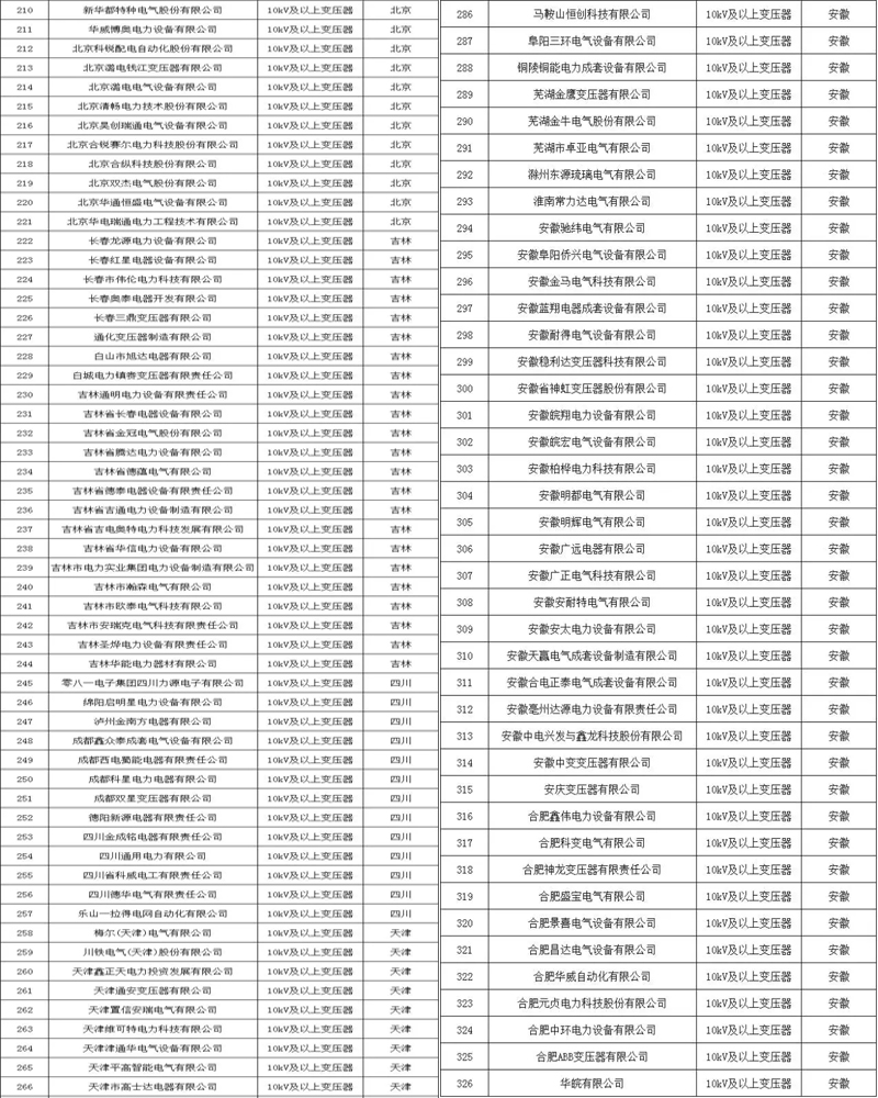 附各省市電力公司符合此次核實標準的變壓器企業名單: