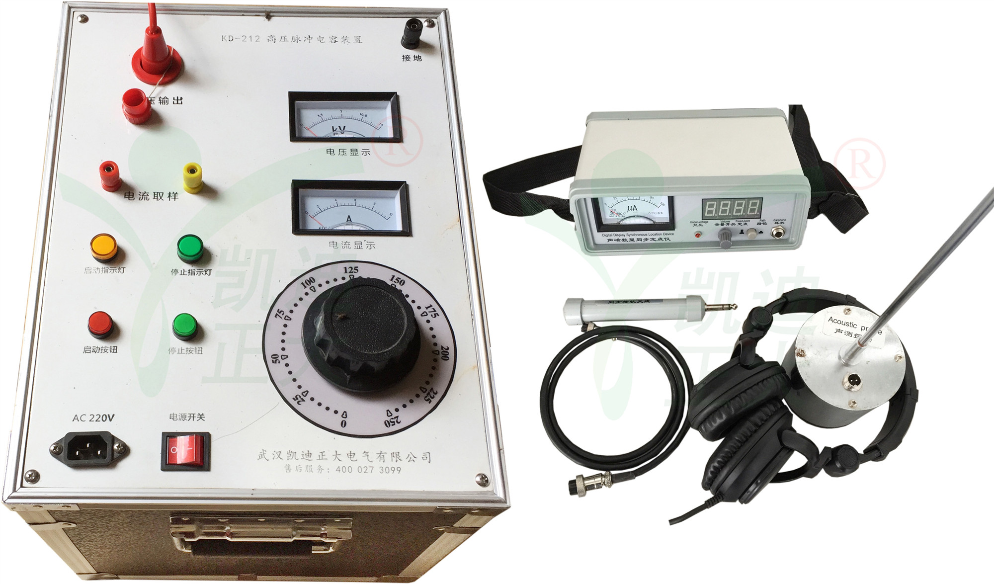 KD-212整套電纜故障測試儀由閃測、尋跡、定位三大部分組成。電纜故障測試儀(閃測儀)可用于檢測電纜尋跡及故障定點是由路徑儀、定點儀、T型探頭、A字架、聽筒等組成。本儀器是電纜故障定位測試的專用儀表,適用測試對象為具有金屬導(dǎo)體(線對、護(hù)層、屏蔽層)的各種電纜。其主要功能為對地絕緣不良點的定位測試,線纜路徑的探測以及線纜埋深的測試。