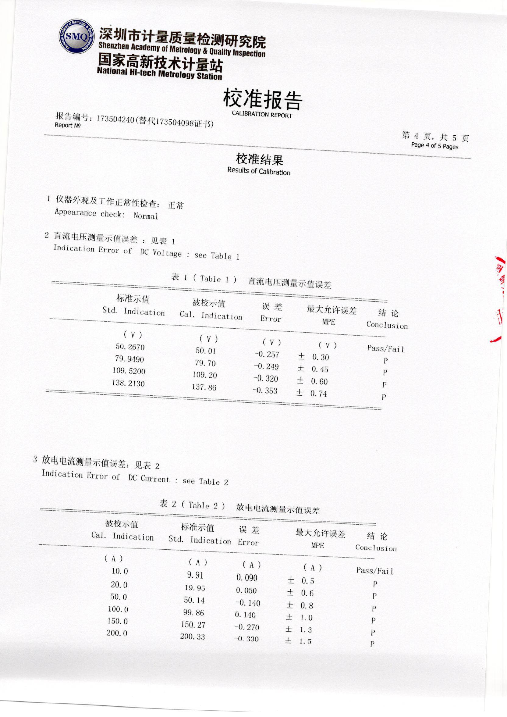 應中廣核遼寧紅沿河核電有限公司的需求,將武漢凱迪正大電氣公司生產的KDZD880(110V300A)智能蓄電池放電儀出具國家高新技術研究院的計量報告后才能使用。校準報告:173504098證書號,出廠編號:KD15042815,資產編號:500056775,校準依據:參考JJF158-2016數字多用表校準規范JJF(軍工)108-2015電池充放電測試儀校準規范。嚴格出具檢定合格報告。