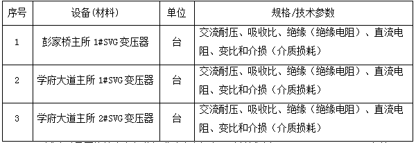 擬對彭家橋主所1#SVG變壓器、學府學府大道主所1#、2#SVG變壓器這三臺變壓器進行相關檢測試驗,根據現場勘察,本項目具備實施可行性。