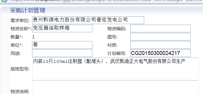 武漢凱迪正大電氣有限公司專業生產電力試驗設備:KDJJC-80KV絕緣油介電強度測試儀、KDYDJ工頻耐壓試驗裝置、KDZG-II直流高壓發生器、YDJ油浸式試驗變壓器、GTB干式試驗變壓器、KDJB微機繼電保護測試儀、KDHG互感器特性綜合測試儀、KD-216電纜故障測試儀、KDGK斷路器動作特性測試儀、絕緣及接地電阻測試儀、六氟化硫氣體檢測儀等。其中變壓器檢測儀多次吸引中國華電集團貴州黔源電力股份公司的招標采購,此次招標采購指定武漢凱迪正大電氣股份有限公司生產的KDZD變壓器油取樣箱注射器10只100ml裝一套、KDZD變壓器油取樣箱廣口瓶10只250ml裝一套等電力試驗設備配件材料。