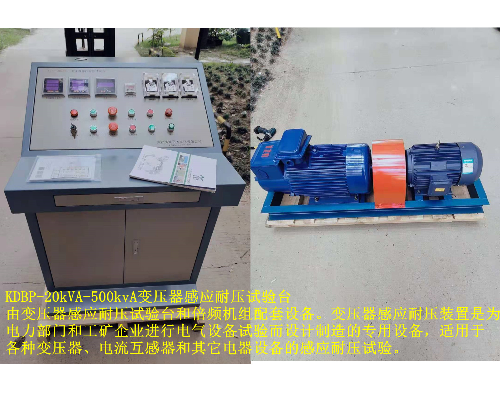 這次采購的KDBP-20kVA變壓器感應耐壓試驗臺由變壓器感應耐壓試驗臺和倍頻機組配套設備。變壓器感應耐壓裝置是為生產電力部門定制的各種變壓器的感應耐壓試驗出廠檢測,倍頻感應機組還可以給工礦企業(yè)進行電氣設備試驗而設計制造的專用設備,適用于各種變壓器、電流互感器和其它電器設備的感應耐壓試驗。