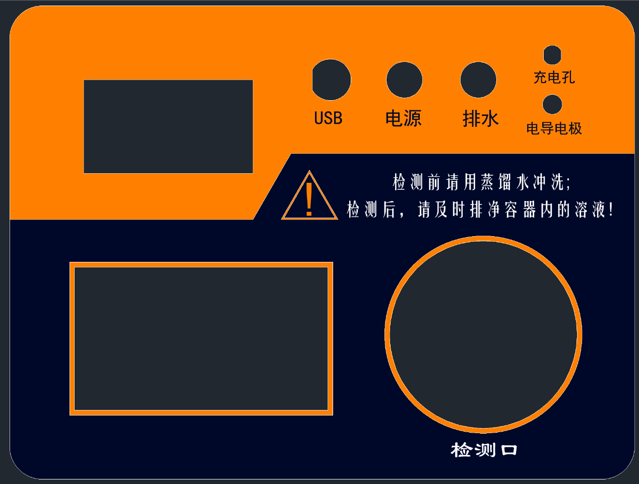 將排水管插入排水孔,按下“排水”按鍵即可將被測溶液從排水管排出,待被測溶液全部排出后,再加入適量蒸餾水,進(jìn)行清洗,可反復(fù)沖洗幾遍,直到容器內(nèi)沖洗干凈并排盡所有蒸餾水后,恢復(fù)“排水”按鍵,拔出排水管。