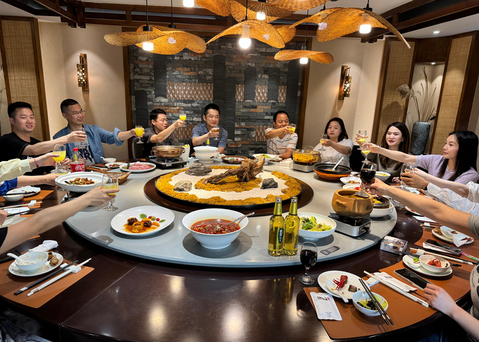 聚餐過程中,大家圍坐在一起,享受著豐盛的美食。桌上擺放著各式佳肴,色香味俱佳,讓人垂涎欲滴。公司準備了精美的生日蛋糕,餐廳為壽星準備了和寓意長壽的面條。蛋糕上點綴著鮮艷的水果,口感細膩,甜而不膩;面條則寓意著長壽和健康,寄托著公司對員工的美好祝愿。